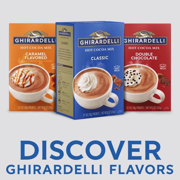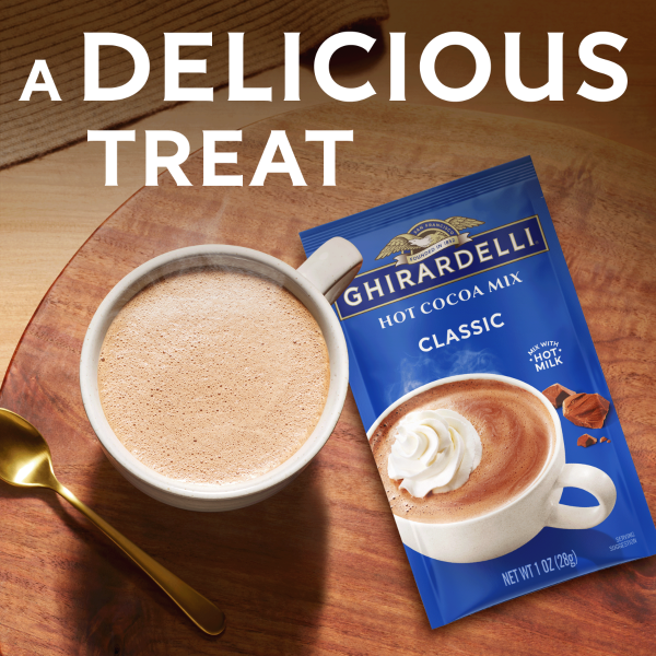 Enjoy GHIRARDELLI Classic Hot Cocoa Mix, a delightful treat for cocoa lovers. This mix offers a smooth, creamy, and balanced chocolatey flavor. Perfect for cozying up with a warm mug any time of the year, it’s an ideal way to elevate your daily routine. Use this mix to create indulgent hot cocoa or enhance your favorite desserts. GHIRARDELLI products are crafted with premium ingredients. GHIRARDELLI Makes Life A Bite Better.