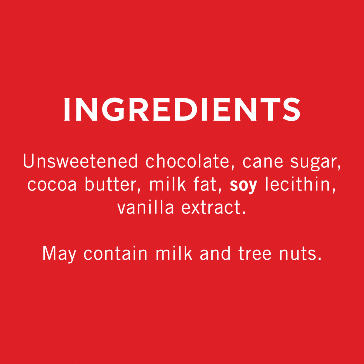 - Intense dark chocolate squares made with 60% cacao for a rich, decadent flavor