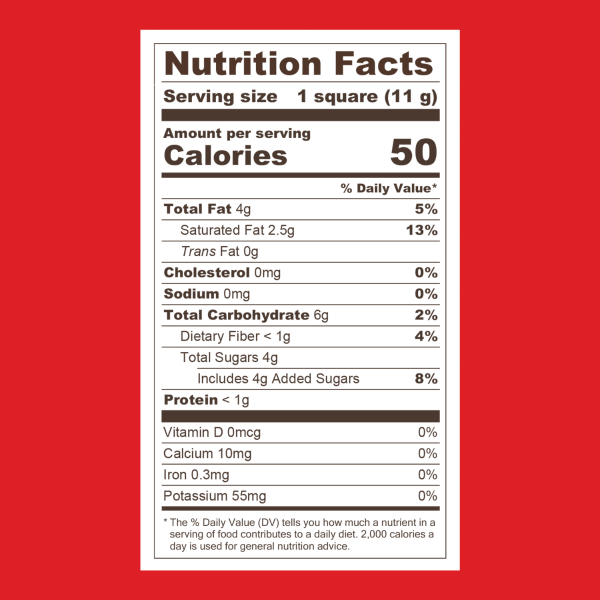 - Intense dark chocolate squares made with 60% cacao for a rich, decadent flavor