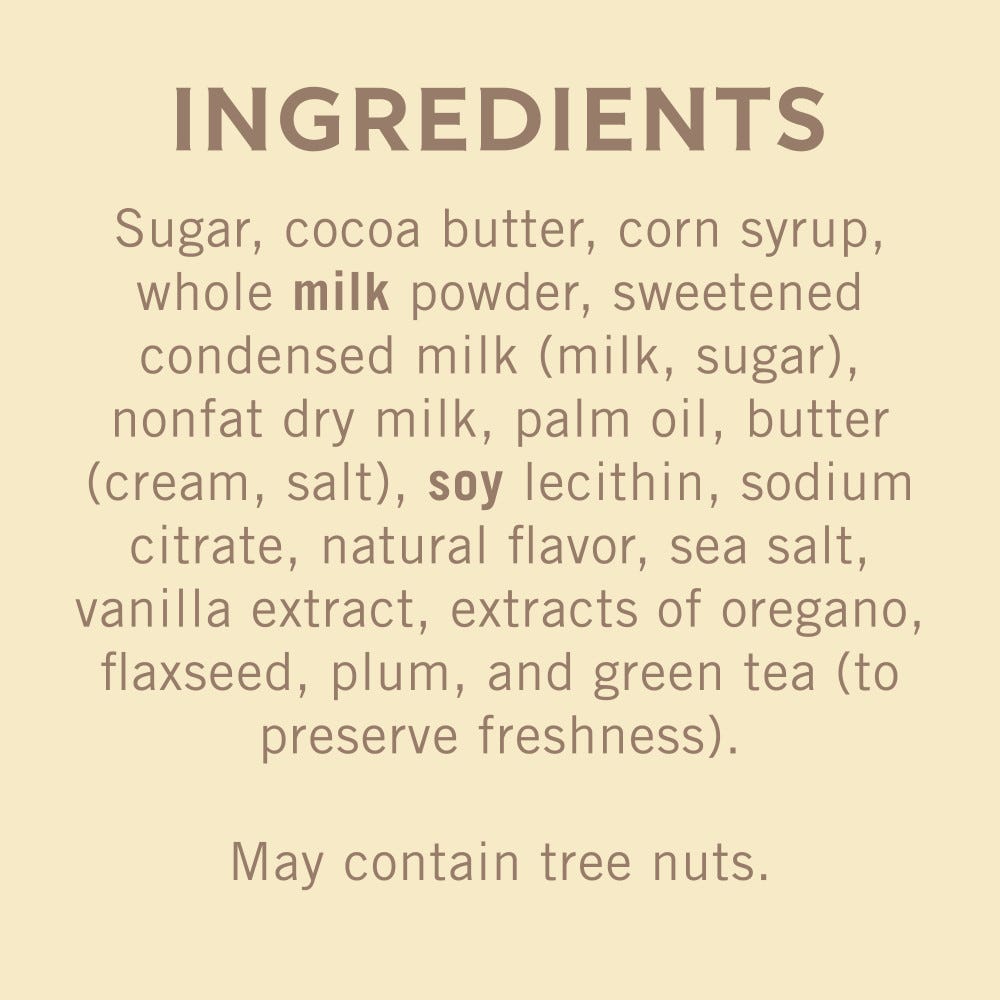 - Individually wrapped White Chocolate Caramel SQUARES in 6 bags, perfect for a sweet treat